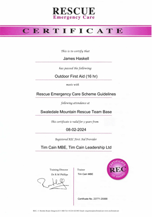 A requirement to become a Mountain Leader is to hold a current First Aid Certificate.