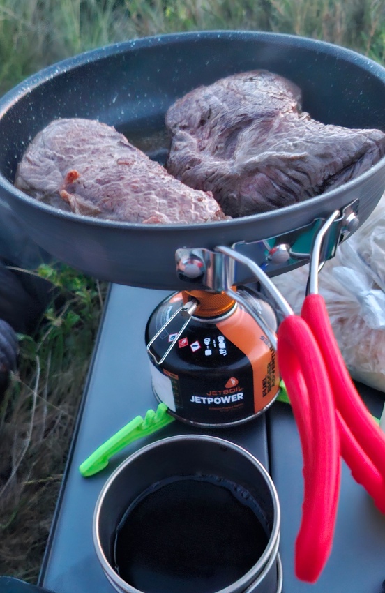 Water is heavy, carry dried food and rehydrate when you get into camp.